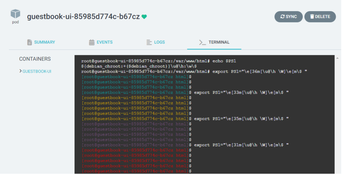 以上の通り、ArgoCD UIからコンテナにログインし、コマンドを実行することができました。サイドカーコンテナが含まれているときはどうなるのかなど、気になる点もありますが、開発環境などで簡単にコンテナの状態をチェックするには役立ちそうです。